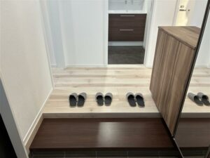 玄関スペースは、昇り降りの負担を軽減したり、靴の履き替えがしやすくなる式台を設けています!