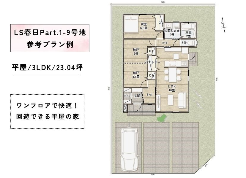 敷地面積181.94㎡(55.03坪) 〜233.68㎡(70.68坪)