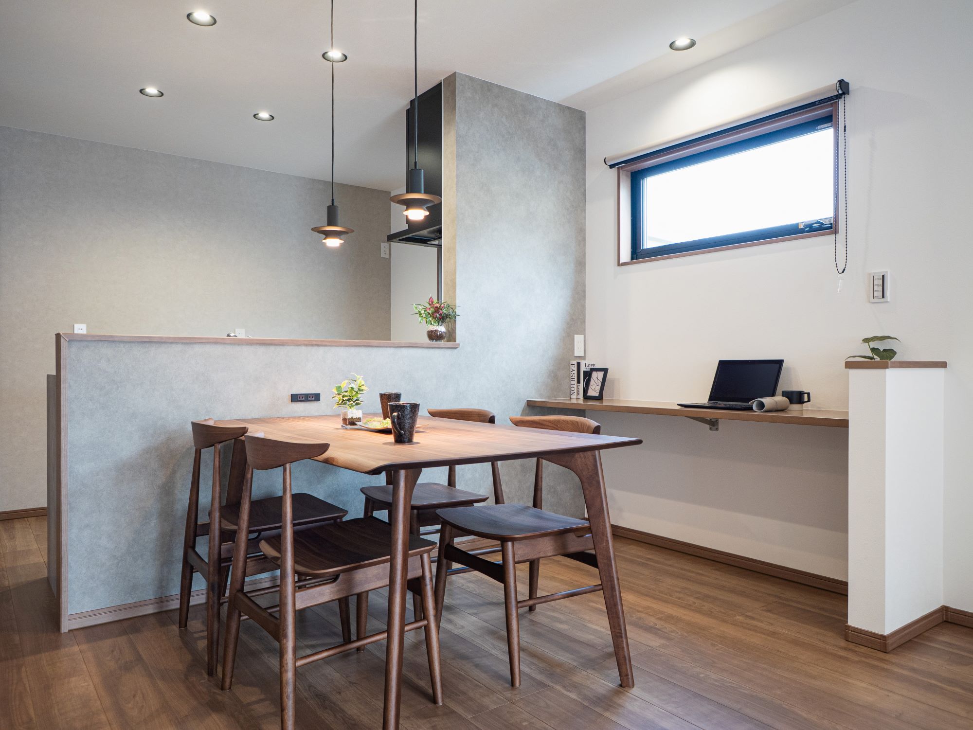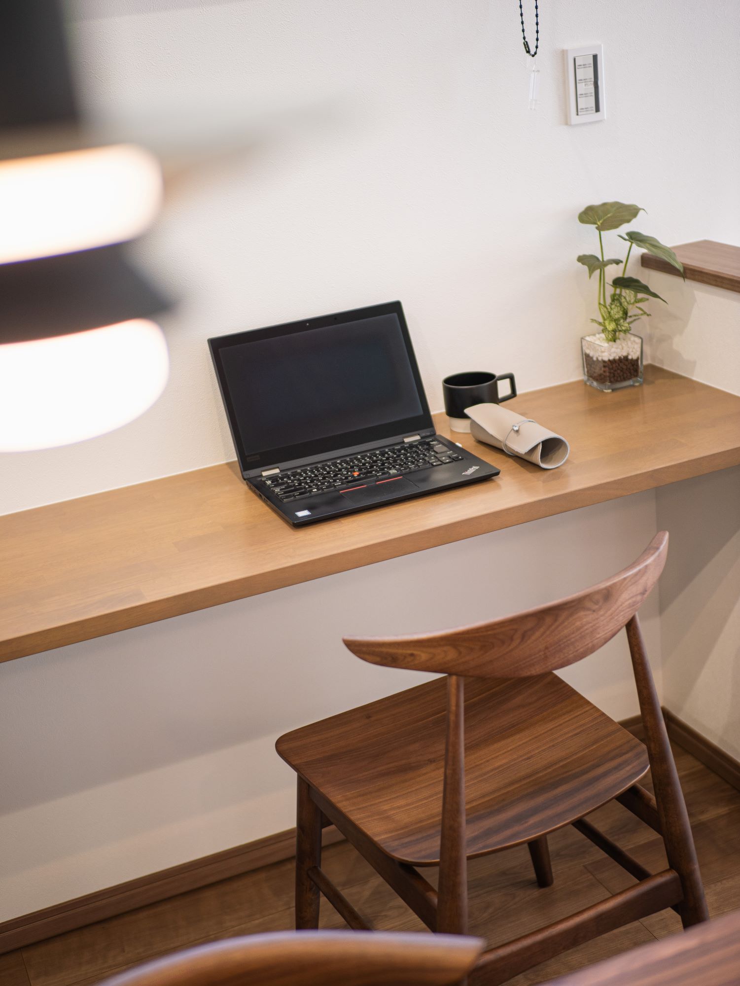 作業テーブルとして使えるカウンター付き。育児記録や在宅ワークなど、ライフスタイルによって使い分けが可能。