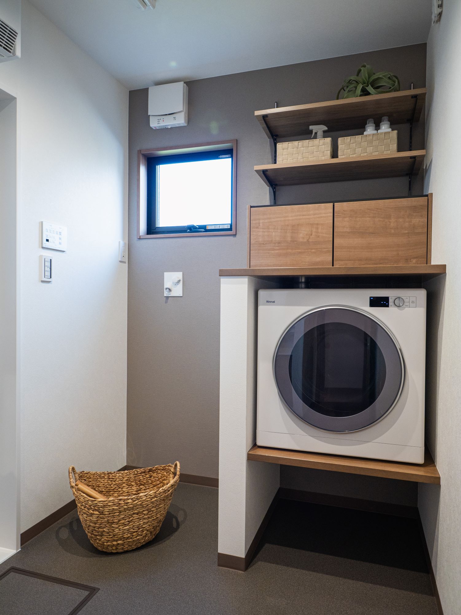 洗面脱衣室には、ガス衣類乾燥機あり。洗濯の時短はもちろん、洗濯物がふんわり心地いい仕上がりに。
